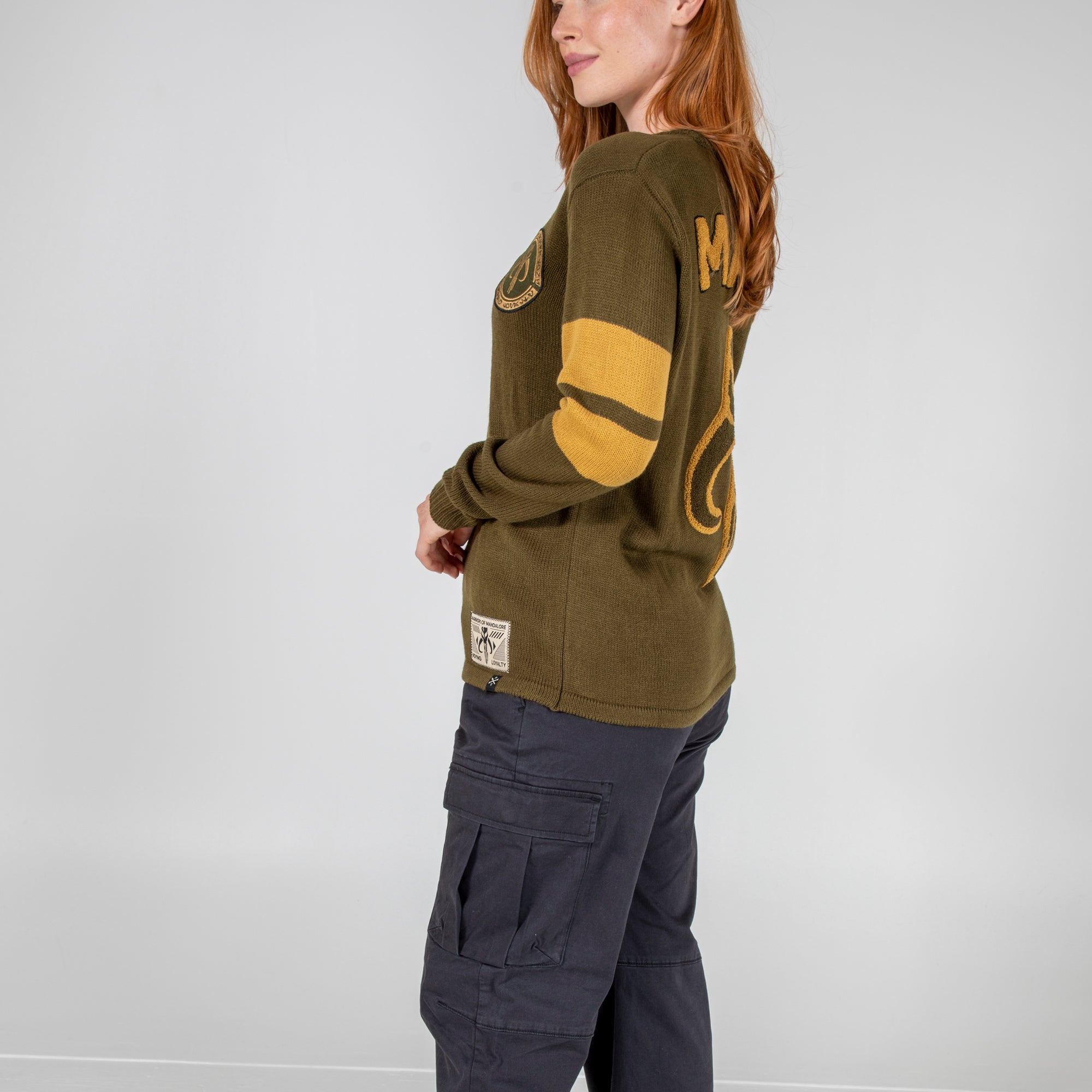 - Ribbed collar, cuffs, and waist