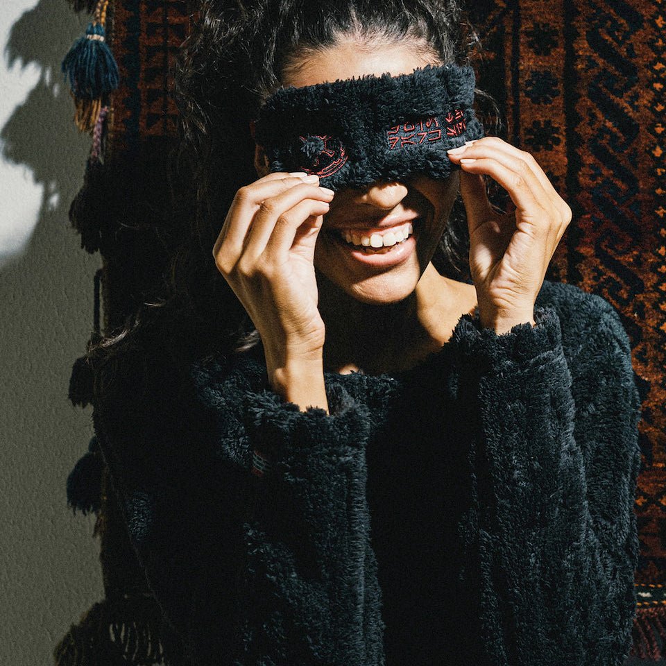 - Masque pour les yeux, chouchou, bandeau et trousse de toilette